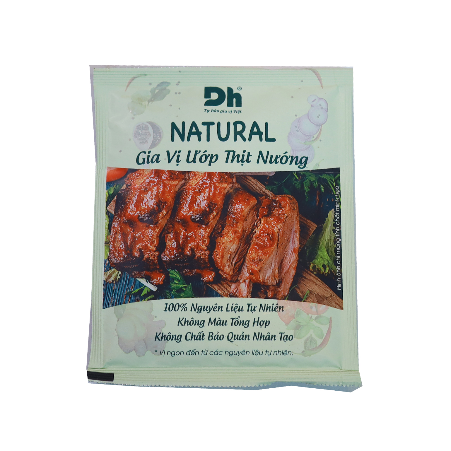 Gia vị ướp thịt nướng 10g là sự kết hợp hoàn hảo từ mùi tây và lá nguyệt quế mang lại hương vị đặc trưng. Gói gia vị 10g dùng ướp khoảng 0,5 kg thịt. Sản phẩm dùng ướp với các loại thịt bò, heo, gà, tôm, … các món nướng BBQ. Uớp thịt với gói gia vị trong 30 phút.