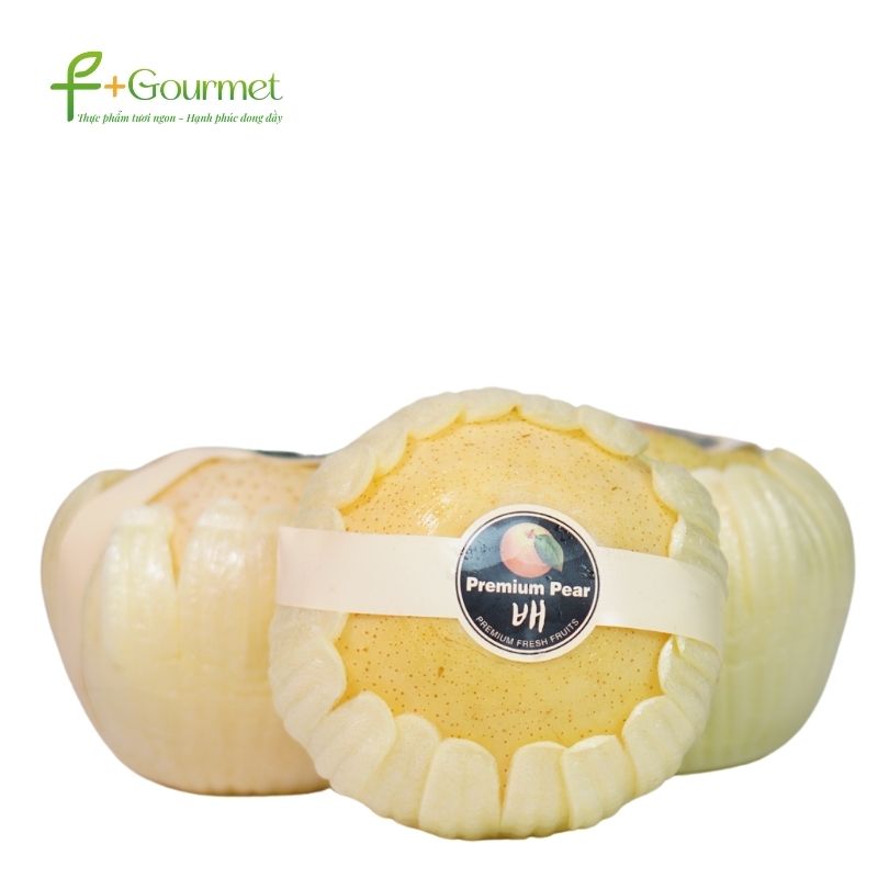 Lê Sữa to tròn, bên ngoài căng mọng, mịn màng, bên trong thịt lê giòn, ngọt và nhiều nước là lý do lê sữa Hàn Quốc đắt hàng tại F+Gourmet.